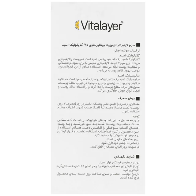سرم لایهبردار تایمویت ویتالیر با غلظت ۷٪ گلیکولیک اسید، یک محلول لایهبردار ملایم و در عین حال موثر است که برای بهبود کیفیت ظاهری انواع پوست طراحی شده است. این محصول با جداسازی سلولهای مرده، پوست را شفاف کرده و با استفاده مداوم، ظاهری سالم و یکدست به چهره شما میبخشد.